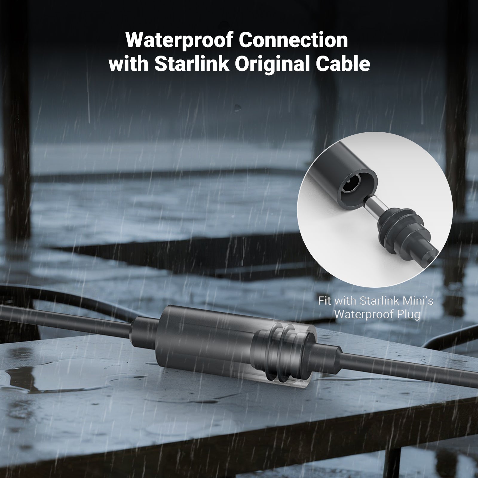 - Waterproof DC5521 Female Port – The precisely molded DC5521 female connector fits snugly with the Starlink Mini’s original DC male plug and silicone gasket. No extra adapters or waterproofing needed—just a tight, weather-resistant connection built for outdoor use.